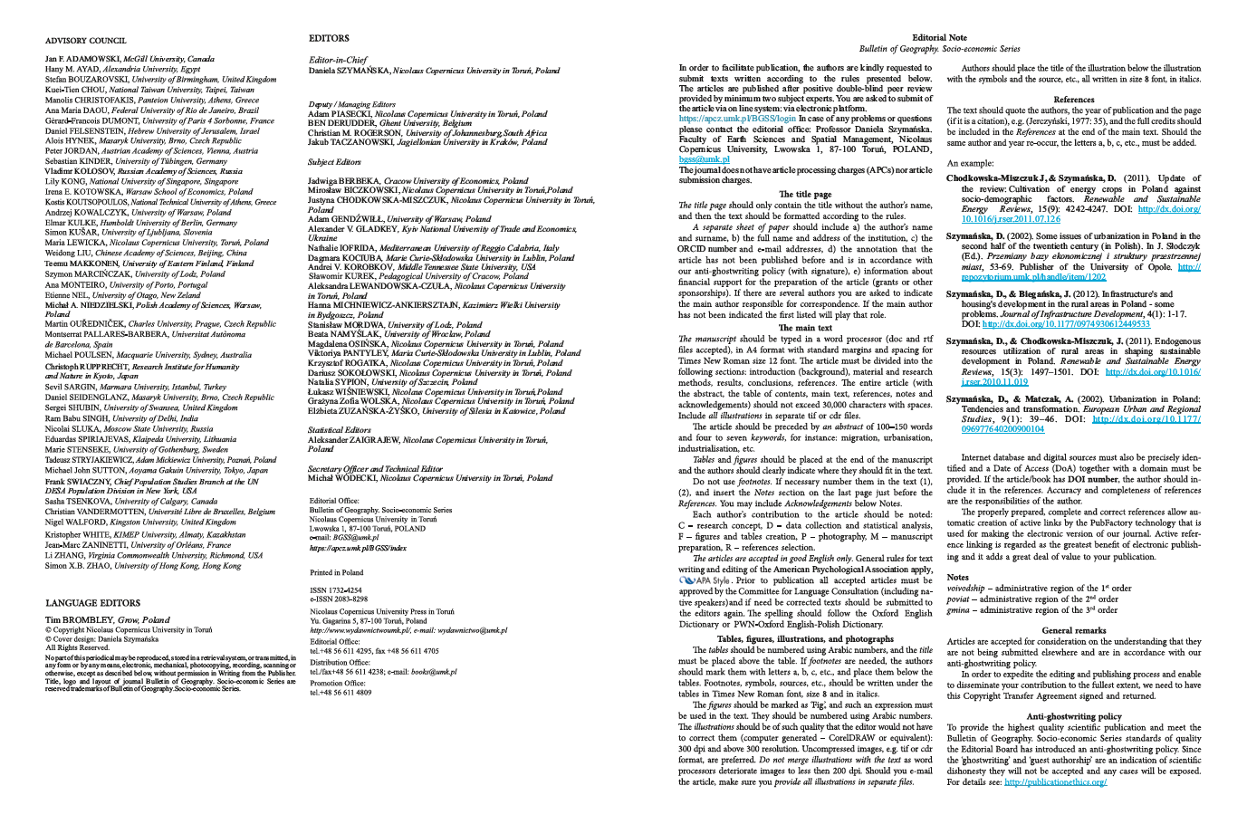 Rozwój czasopism naukowych: “Bulletin of Geography: Socio-economic Series”