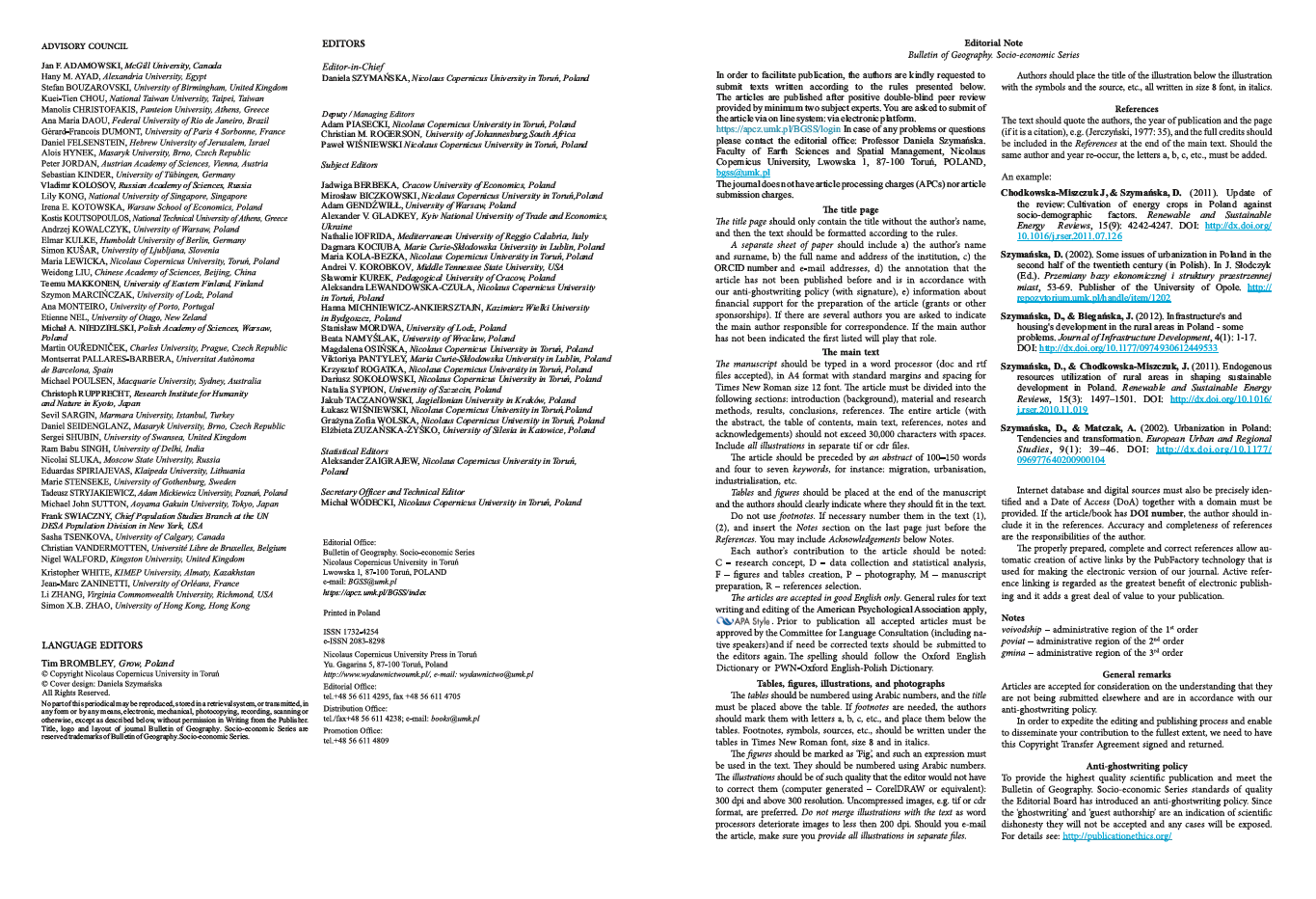 Rozwój czasopism naukowych: “Bulletin of Geography: Socio-economic Series”